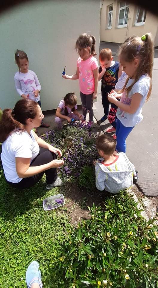 A „Levendula szüret” hetében az óvodakertben végzett a tevékenységek során érzékelték a munkafolyamatok sorrendjét, a szüret alkalmával a munka eredményét. Megismerték a levendula gyógyhatását, tartósítási eljárását, felhasználásának különböző módjait. A „Boszorkány konyhában” kevertek citromfű szörpöt, limonádét, levendulás krémet, levendula szappant, levendula csokrokat. Az alkotó téren szebbnél szebb alkotások készültek levendula gyurmából, kisplasztikák a növény felhasználásával.